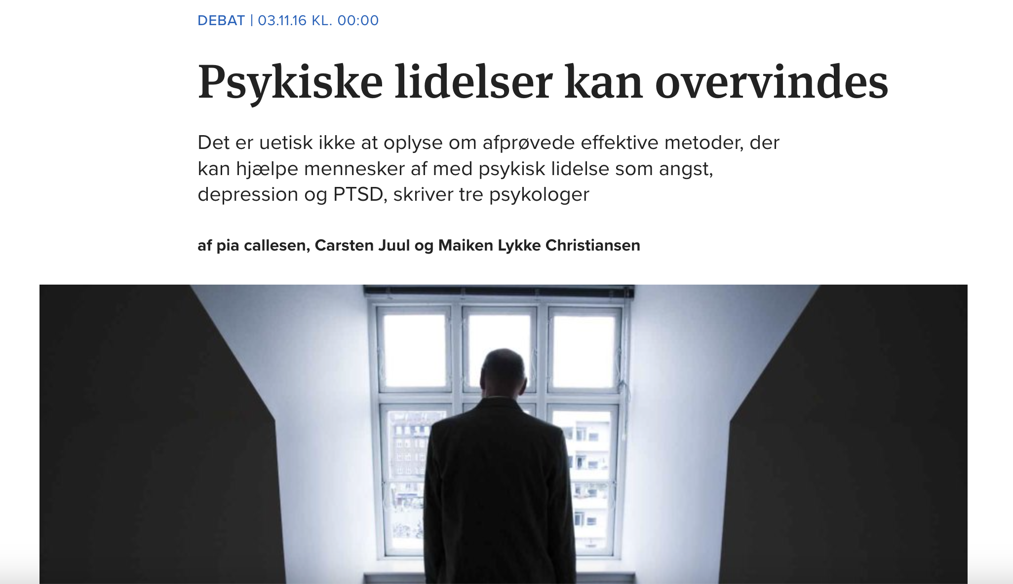 Artikel fra Kristeligt Dagblad: “Psykiske lidelser kan overvindes” af Pia Callesen, Carsten Juul & Maiken Lykke